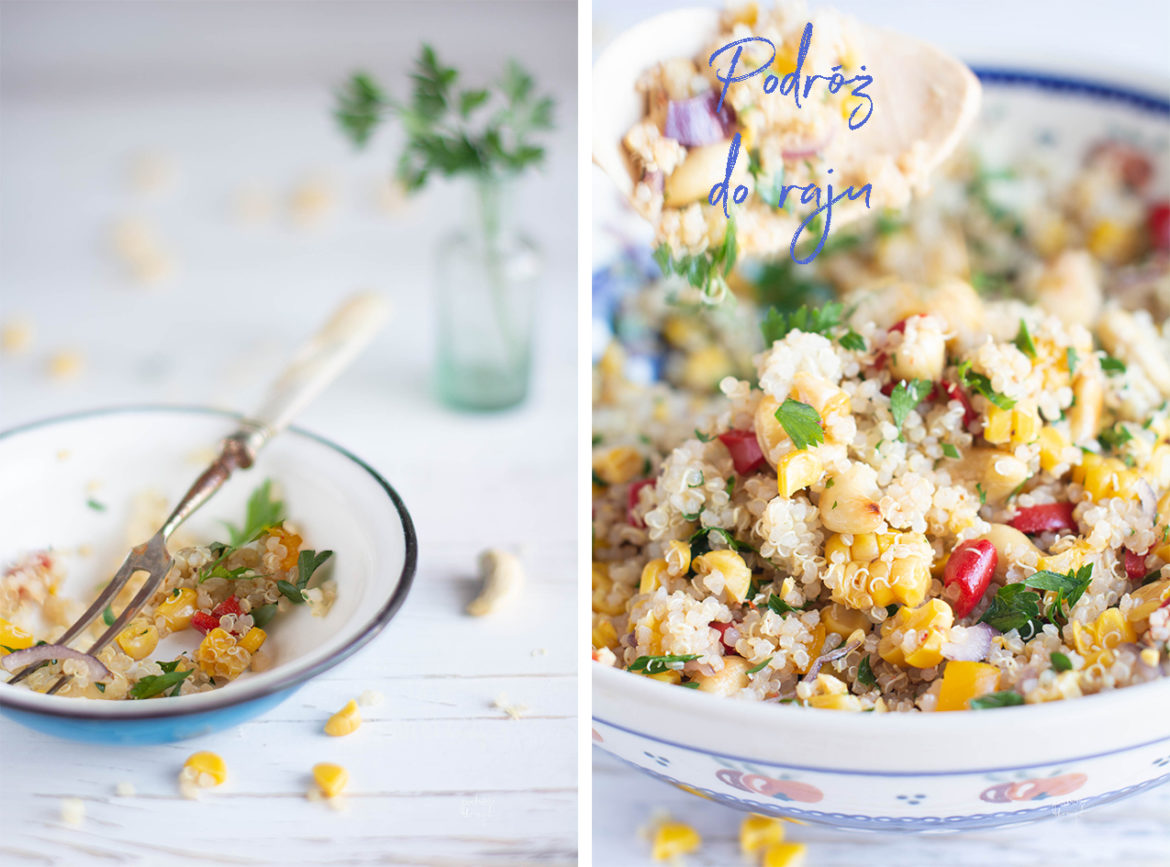 Sałatka z komosy ryżowej i kukurydzy z prażonymi orzechami nerkowca