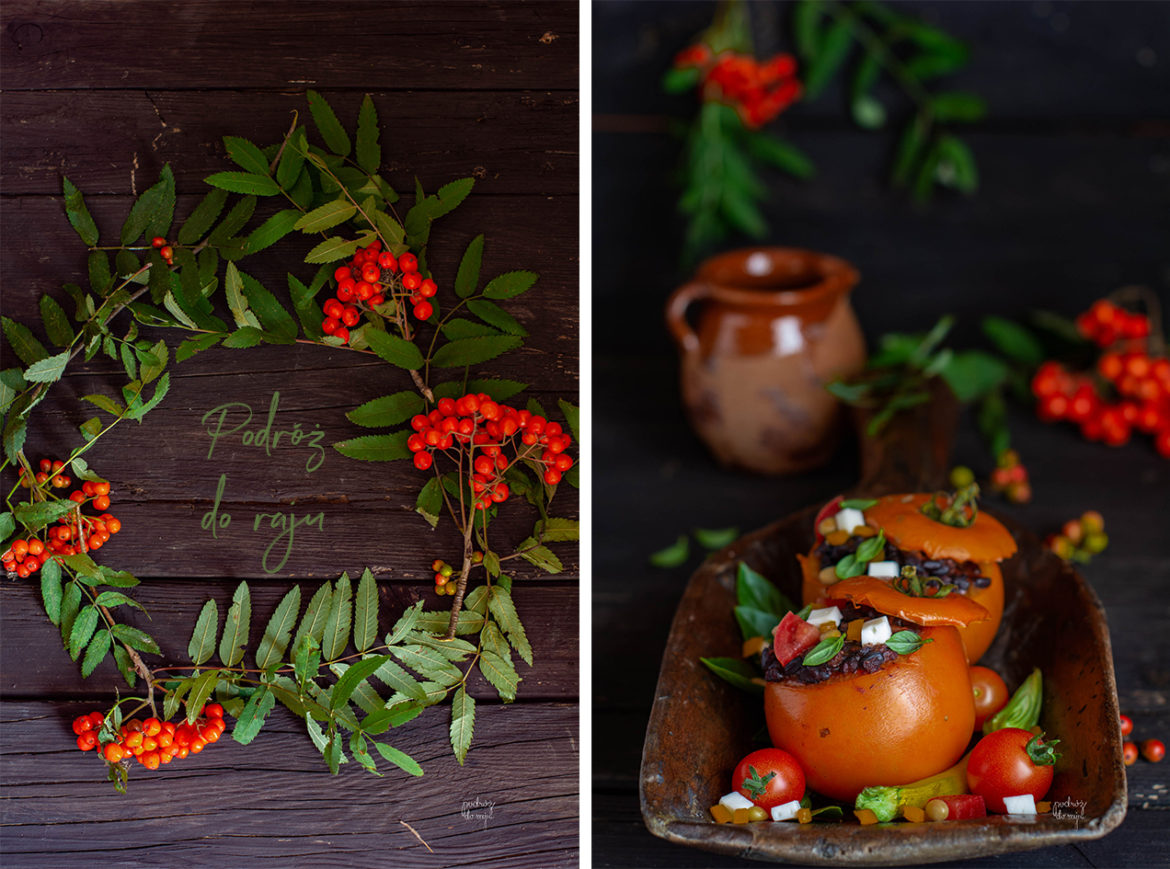 Faszeruj masą pomidory i przykryj je  odciętymi częściami, zapiekaj przez około 35 minut w temperaturze 180 stopni
