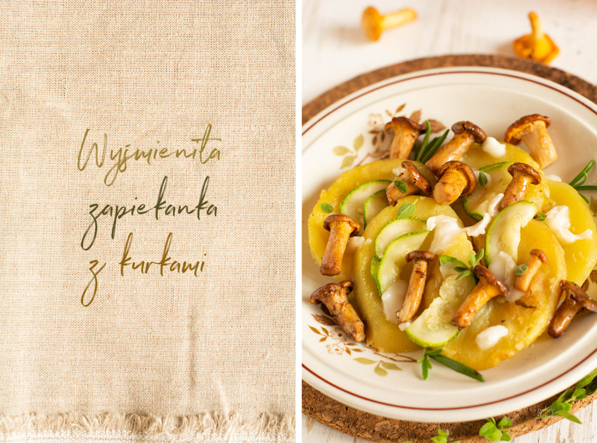 Bardzo lubię kurki uduszone na maśle, tak, aby cała woda z nich wyparowała. Wtedy to je solę i pieprzę, i jeszcze chwilę trzymam na ogniu mieszając. Takie uduszone można podawać do różnych dań, np. wymieszać je z masłem i posmarować chleb czy grzankę, zrobić na nich jajecznicę, dodać do zupy, do pizzy, wyłożyć na przeróżne wytrawne placki, dodać do risotto, makaronu lub zrobić zapiekankę jak ta poniżej. Sezon na kurki trwa od czerwca do października, jest więc czas na urozmaicenie kuchni tymi pysznymi grzybami. Mają też niesamowity kolor, nawet po uduszeniu, co dodaje atrakcji wzrokowej przy jedzeniu.