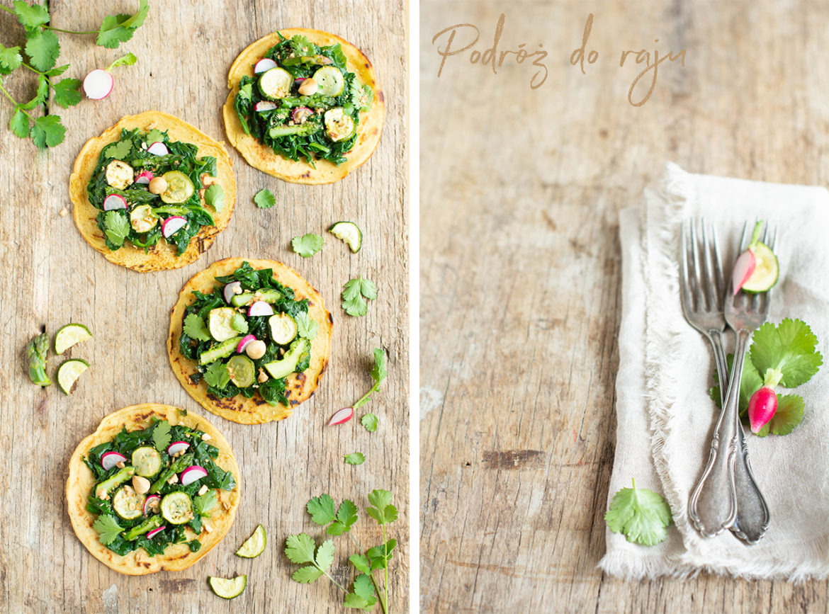 Układaj szpinak, rzodkiewki, szparagi i plastry cukinii na plackach i zapiecz je w piekarniku- 170 stopni- 15 minut.