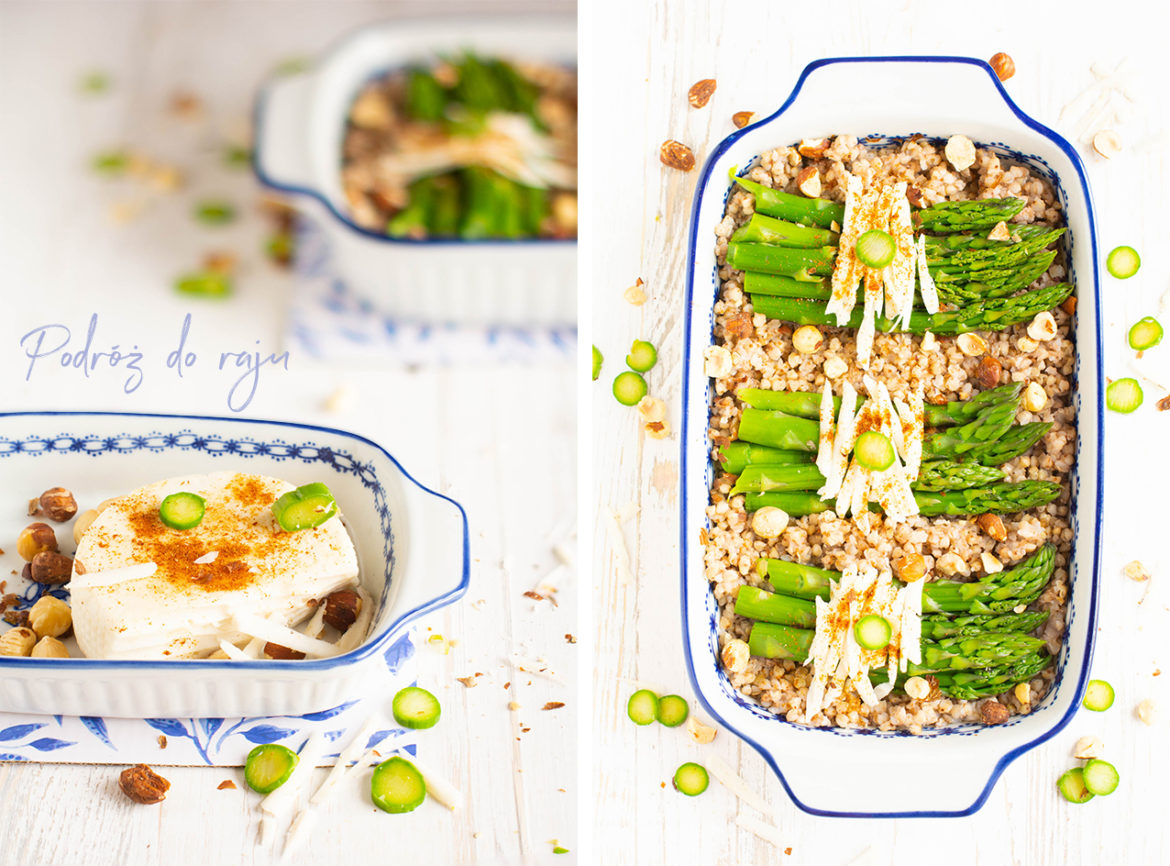 Mam bzika na punkcie szparagów, może dlatego, że sezon trwa tak krótko. Tu do kaszy gryczanej i sera wkomponowały się znakomicie. Bardzo ważnym krokiem jest prawidłowe przyrządzenie kaszy gryczanej, ponieważ nieodpowiednie przygotowanie zniechęci do jedzenia. Kaszę niepaloną prażę na suchej patelni mieszając. Gdy stanie się bardzo gorąca prażę jeszcze 1 minutę i przelewam na sitku wrzątkiem. Wtedy zalewam ją 1,5 szklanki wrzątku, dodaję sól, rozgnieciony w moździerzu jałowiec, łyżeczkę masła, doprowadzam do wrzenia i gotuję na bardzo wolnym ogniu aż kasza wypije całą wodę. Odstawiam jeszcze na piętnaście minut i rozbijam widelcem. Kasza gotowa 🙂